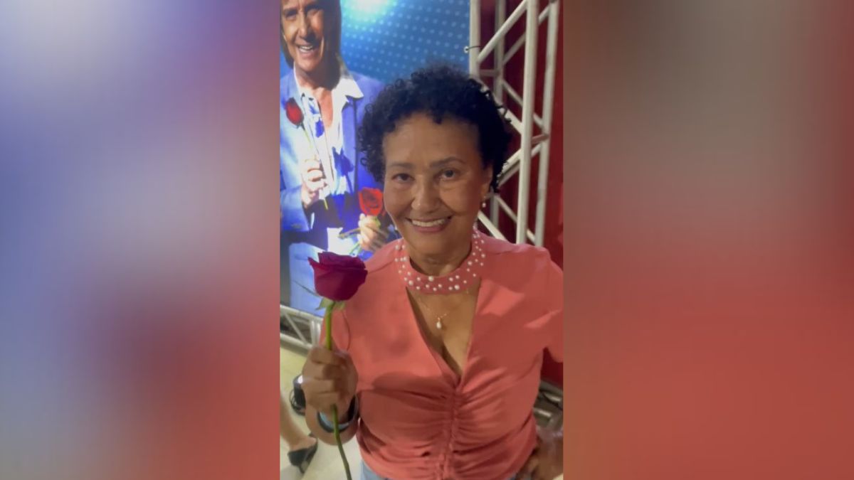 Com 70 anos, Izabel Maia Araújo Gonçalves recebeu uma das rosas distribuídas pelo rei na apresentação que aconteceu nessa quinta-feira (10), em Joinville, no Norte de Santa Catarina.