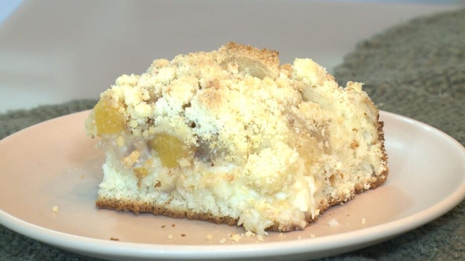 A cuca de pêssego com nozes, do vendedor Geison Rodrigues dos Santos, morador do bairro Costa e Silva, é finalista do Festival de Cucas de Joinville 2025.